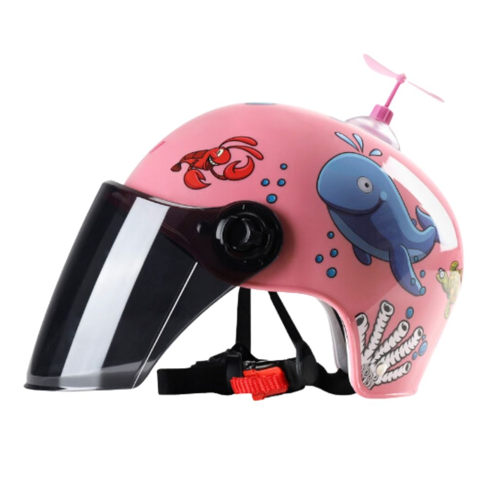 Älskar ditt barn att åka motorcykel? Ge dem säkerhet och komfort med denna motorcykelhjälm med visir. En hjälm med tecknad design och en liten propeller baktill som kommer att roa ditt barn. Ge dem denna motorcykelhjälm med visir i present för att skydda dem från stötar och vind.