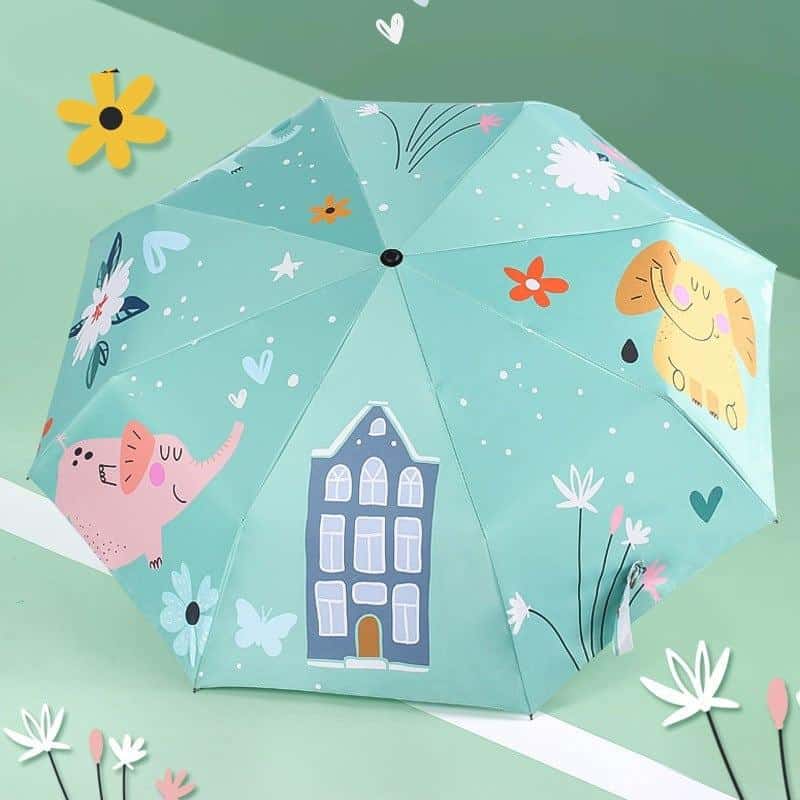 Letar du efter ett paraply som är lätt att bära med sig till ditt barn? Välj detta söta hopfällbara paraply med ett tecknat motiv. Dess färgglada tryck kommer att tilltala din pojke eller flicka. Ge det till dem som en present. De kommer att älska att bära det varje dag för att skydda sig mot solen eller regnet.