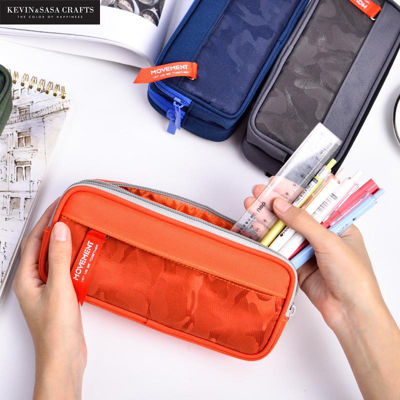 Pennfodral med dubbla fack, så att du kan förvara dubbelt så många saker. Dessutom finns ytterligare en ficka med dragkedja på sidan. Det här fodralet kommer verkligen att vara praktiskt för alla studenter som behöver ha de saker de behöver i vardagen snabbt till hands.