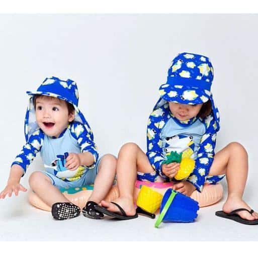Hajblå baddräkt för barn med shorts och t-shirt
