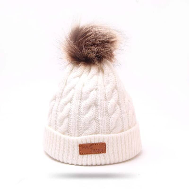 Den stickade mössan med pälspompong är tillverkad av 100% ny ull. Den är varm och bekväm och perfekt för kalla vintrar. Pälspompongen är avtagbar för enkel rengöring. Med denna underbara mössa kommer ditt barn att vara stiligt och skyddat mot kylan i vinter.