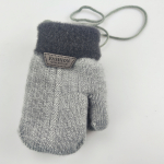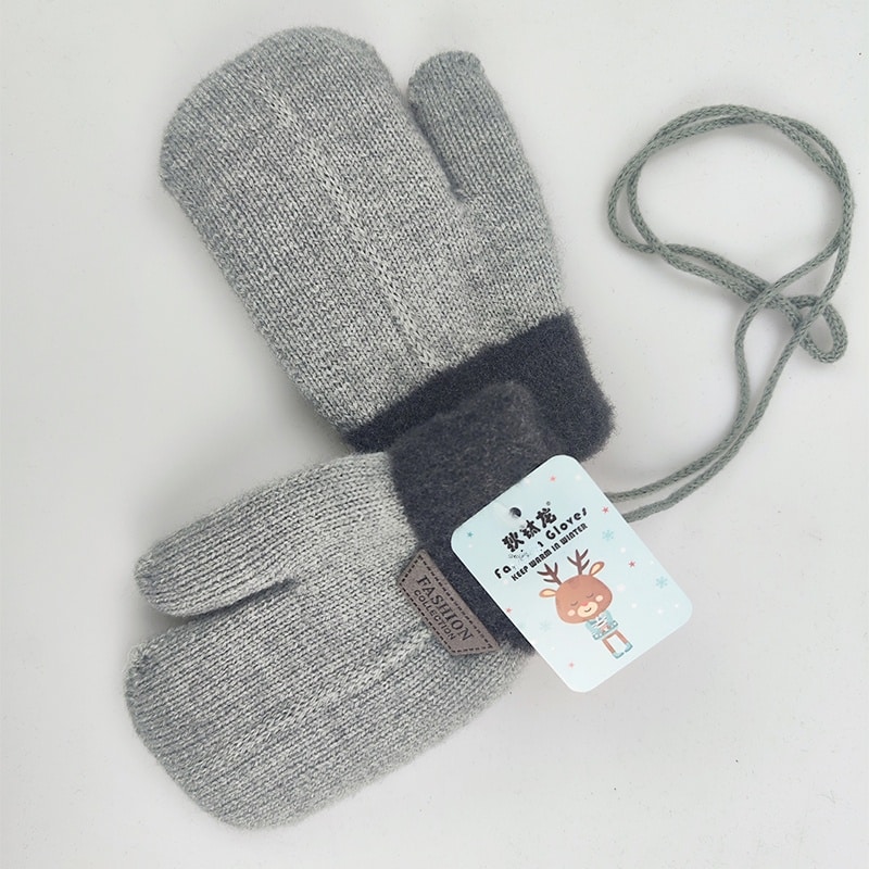 Tjocka, varma gråa barnvantar med dragsko