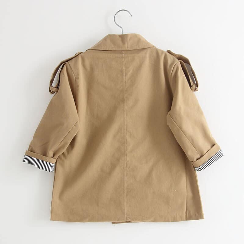 Letar du efter en höstjacka till din dotter? Kolla in denna vackra beige dubbelknäppta parka. Din dotter kommer att se fantastisk ut i den. Denna långärmade jacka är elegant och stilren. Den är tillverkad av bomull och polyester och är mjuk, varm och bekväm att bära. Din lilla prinsessa kommer att älska att bära den på hösten.