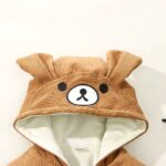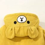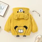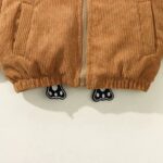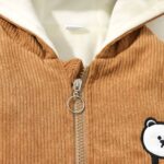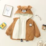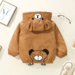 Letar du efter en höstjacka till din pojke? Välj vår vackra jacka med huva. Den finns i brunt och gult och har ett vackert vitt stjärntryck på baksidan. På huvan finns också två söta små öron. Ditt barn kommer att älska den här jackan.