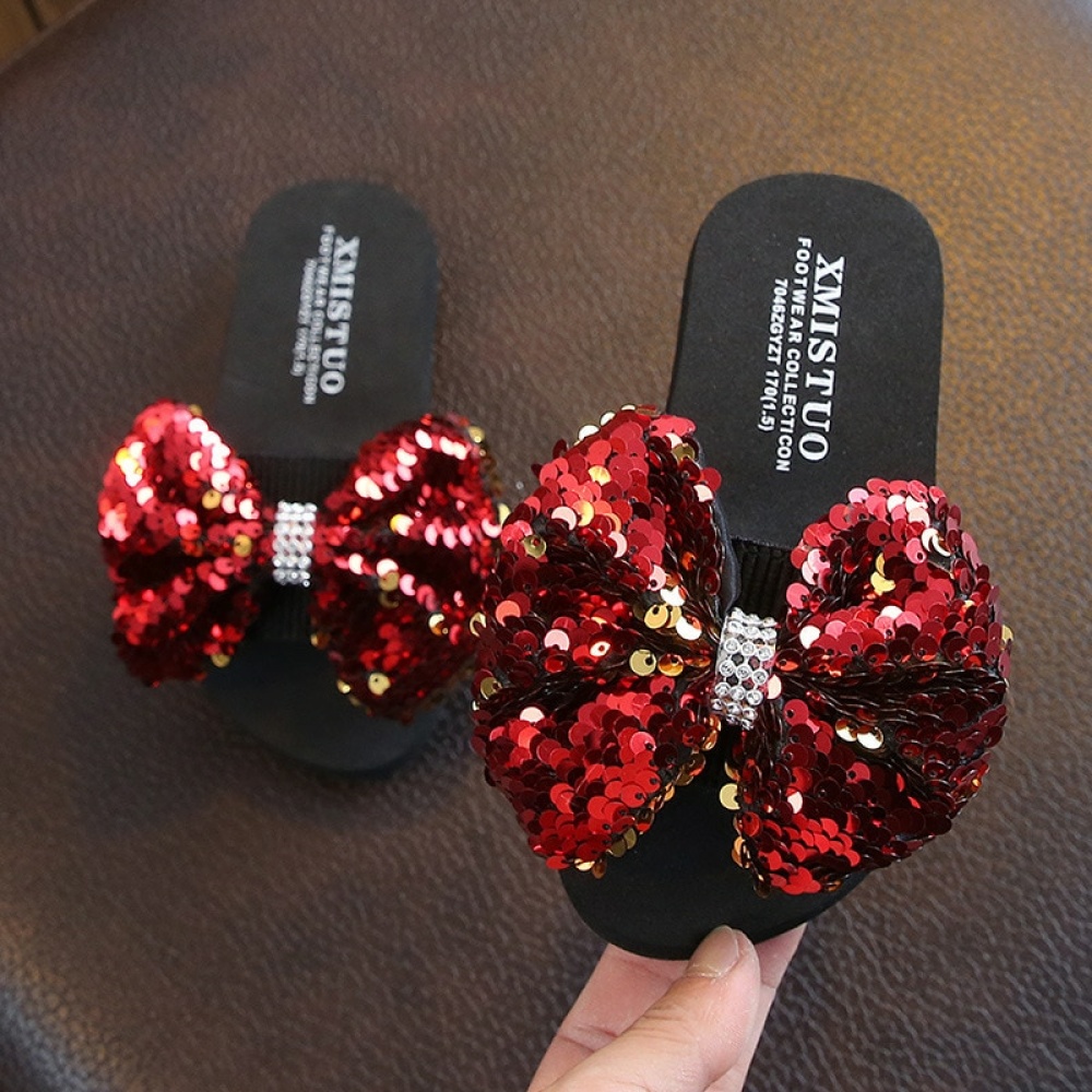 Förvandla dina barn till kvällsstjärnor med dessa paljettklädda flip-flops! De kommer till och med att kunna matcha paljetterna med sina kvällsoutfits; välj bara deras favoritmodell tillsammans med dem och ha kul.