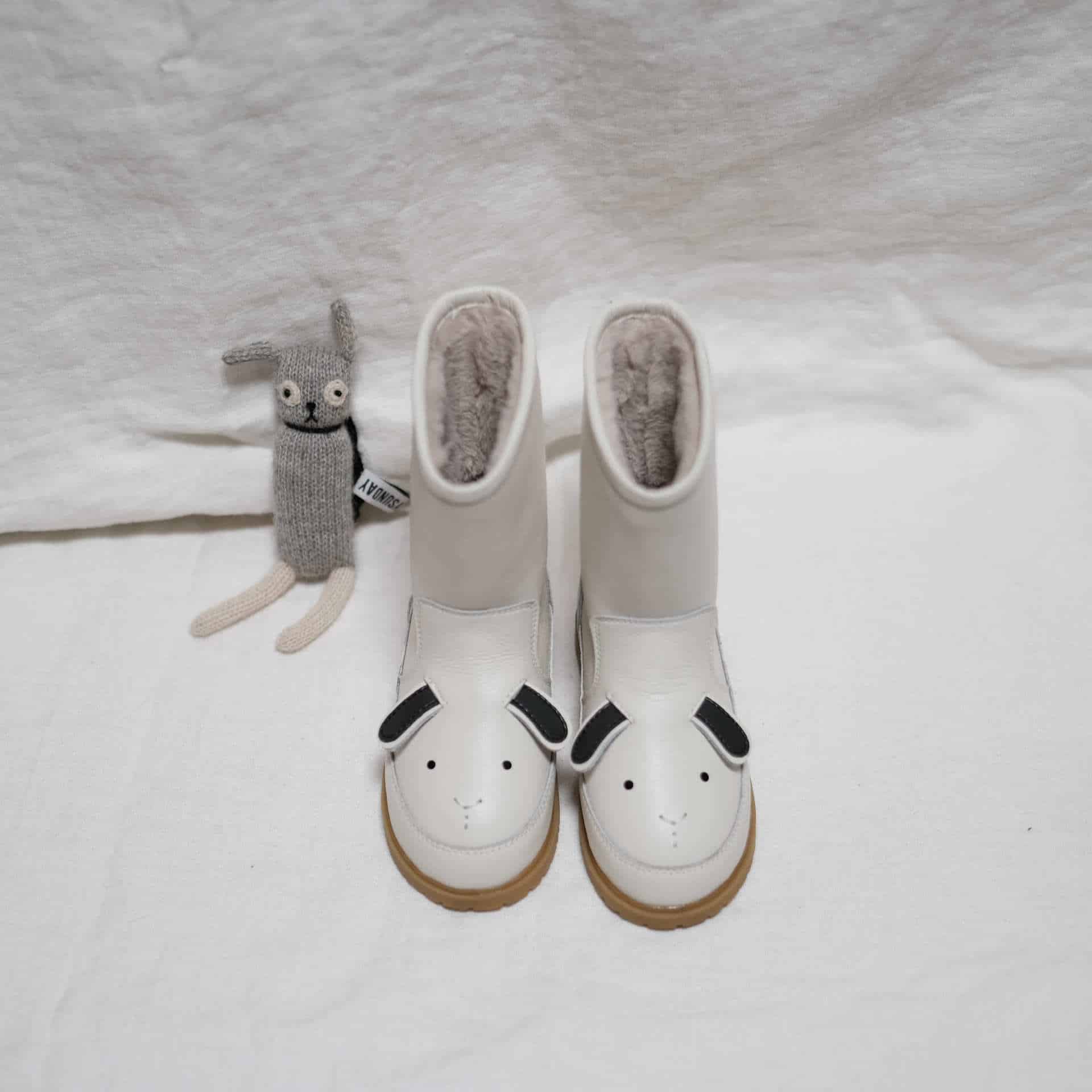Vinterstövlar i äkta läder med kaninmotiv för barn