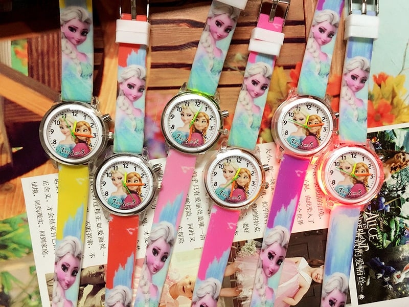 Denna magnifika Elsa och Anna Snow Queen designklocka med blinkande ljus för flickor har Elsa och Anna tecknad design. Små prinsessor kommer att älska att bära denna eleganta klocka på sin handled.