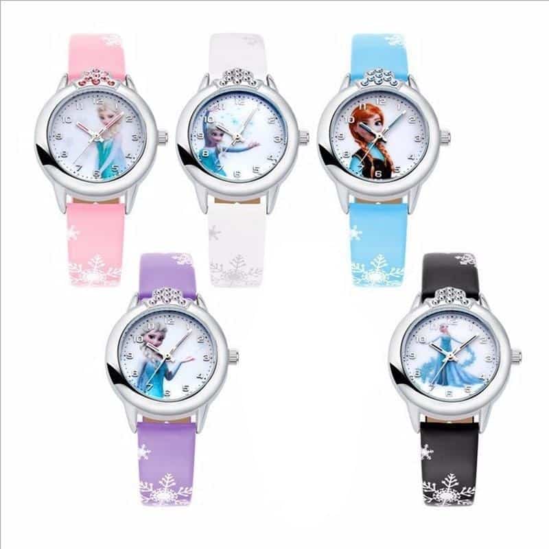 För tjejer som vill ha en riktigt fin klocka finns Princess Elsa-klockan med visare. Bilder av prinsessan är inristade i urtavlan, och armbandet i konstläder är vackert dekorerat med snöflingor. Låtsasdiamanter är också placerade på toppen av boetten för att ge den en lyxig look.