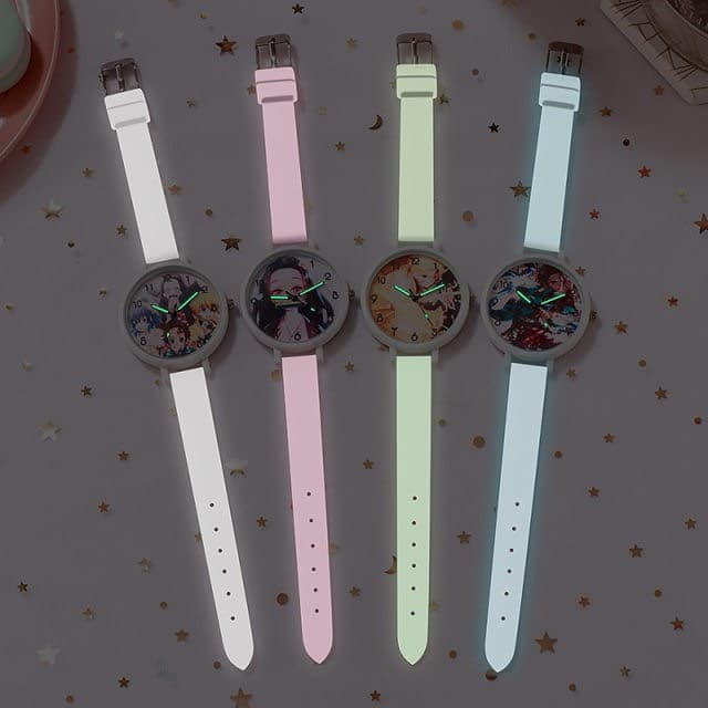 Om dina barn gillar manga och serien Demon Slayer (Kimetsu no Yaiba) är denna lysande klocka med Demon Slayer-dekor något för dem. De kommer att älska de matchande pastellfärgerna på boett och armband. Genom att trycka på knapparna tänds lysdioderna för att lysa upp urtavlan. Barnen älskar den!