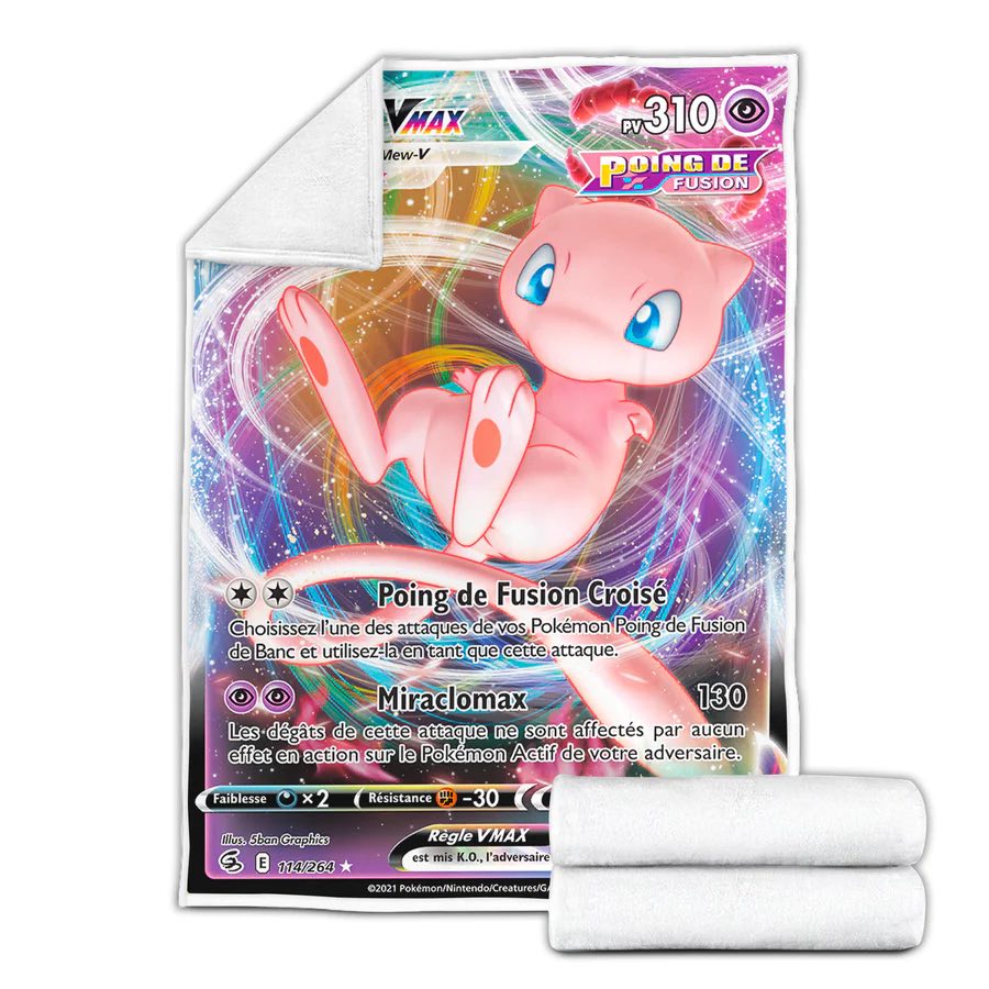 Mew VMAX är en plyschfilt som är officiellt licensierad av Pokémon. Denna filt är officiellt licensierad av Pokémon och är tillverkad av mjukt och fluffigt 100% polyestertyg. Den är perfekt för barn och Pokémon-fans och kan tvättas i maskin.