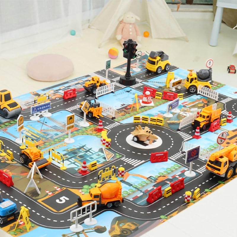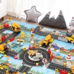 Barn kommer att älska att leka med denna lekmatta med bilbana! Mattan är färgglad och rolig, med en krets av bilar som sträcker sig över hela ytan. Barnen kan rulla bilarna runt banan och ha roligt i timmar. Mattan är tillverkad av mjukt, bekvämt tyg, perfekt för barn. Den är lätt att rengöra och underhålla och kommer att bli ett fint tillskott i ditt barns sovrum.