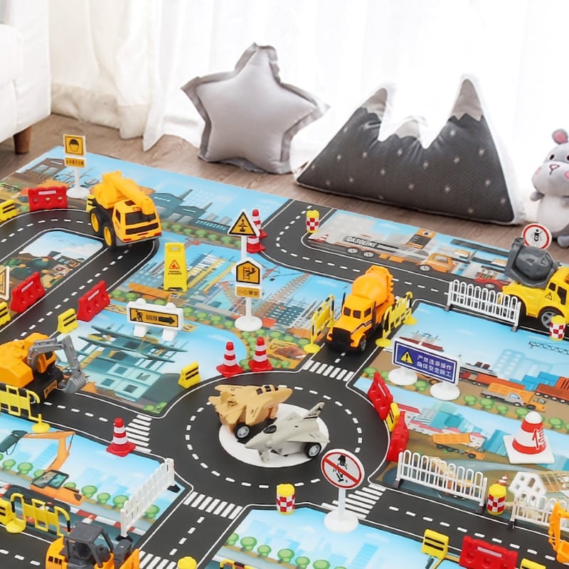 Letar du efter ett roligt, interaktivt sätt att underhålla dina småttingar? Då behöver du inte leta längre än efter bilbanans lekmatta för barn! Denna attraktiva lekmatta har en ljus, färgglad bilbana som garanterat kommer att fånga ditt barns uppmärksamhet. Den är inte bara visuellt stimulerande, den uppmuntrar också till aktiv lek när ditt barn jagar bilarna runt banan.
