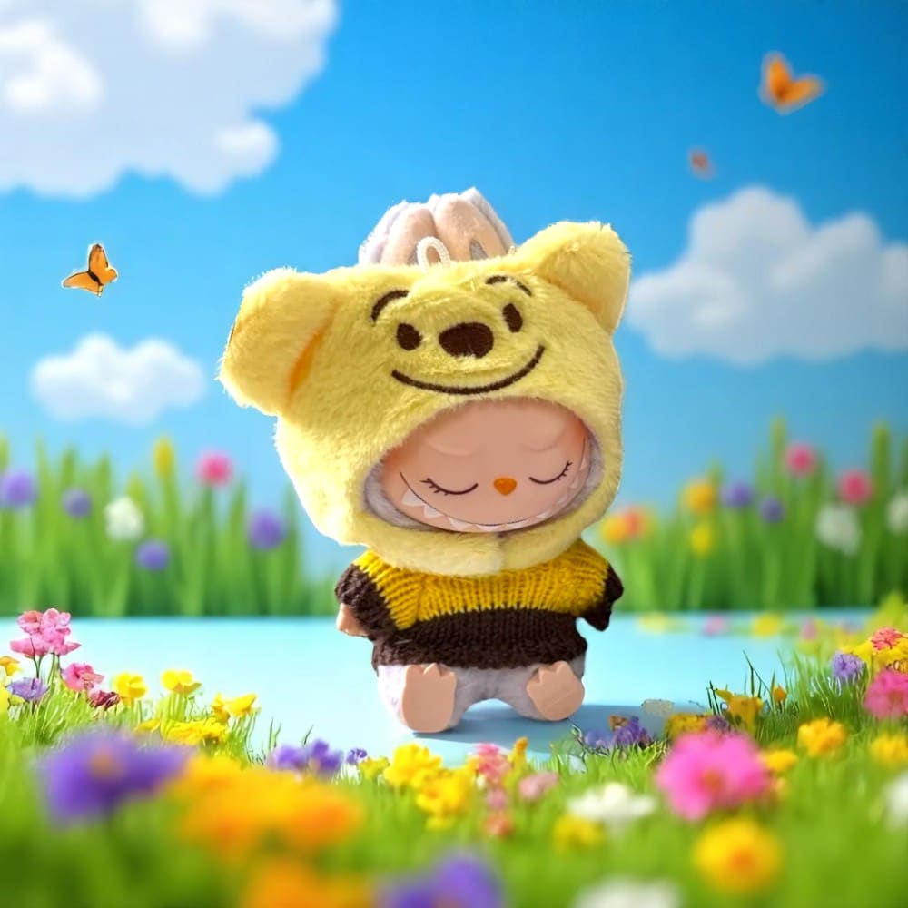 Har ditt barn redan fallit för det mest kända lilla monstret runt? Med den här lilla Winnie the Pooh-dräkten med huva kan de enkelt förvandla sitt Labubu-mjukisdjur till en ny rolig karaktär!