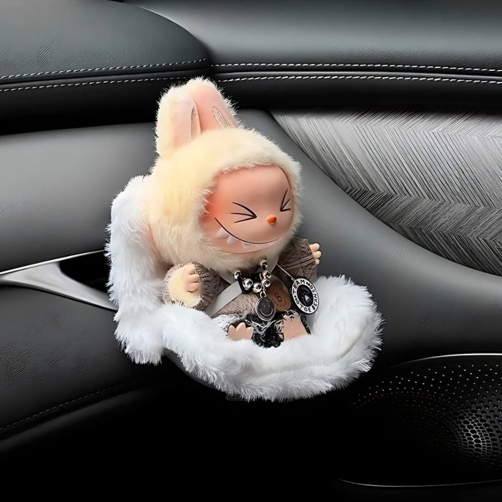 Söt bilbarnstol för gosedjur i Labubu-stil