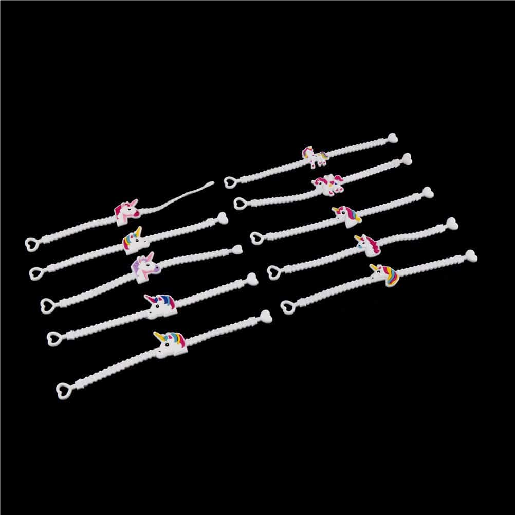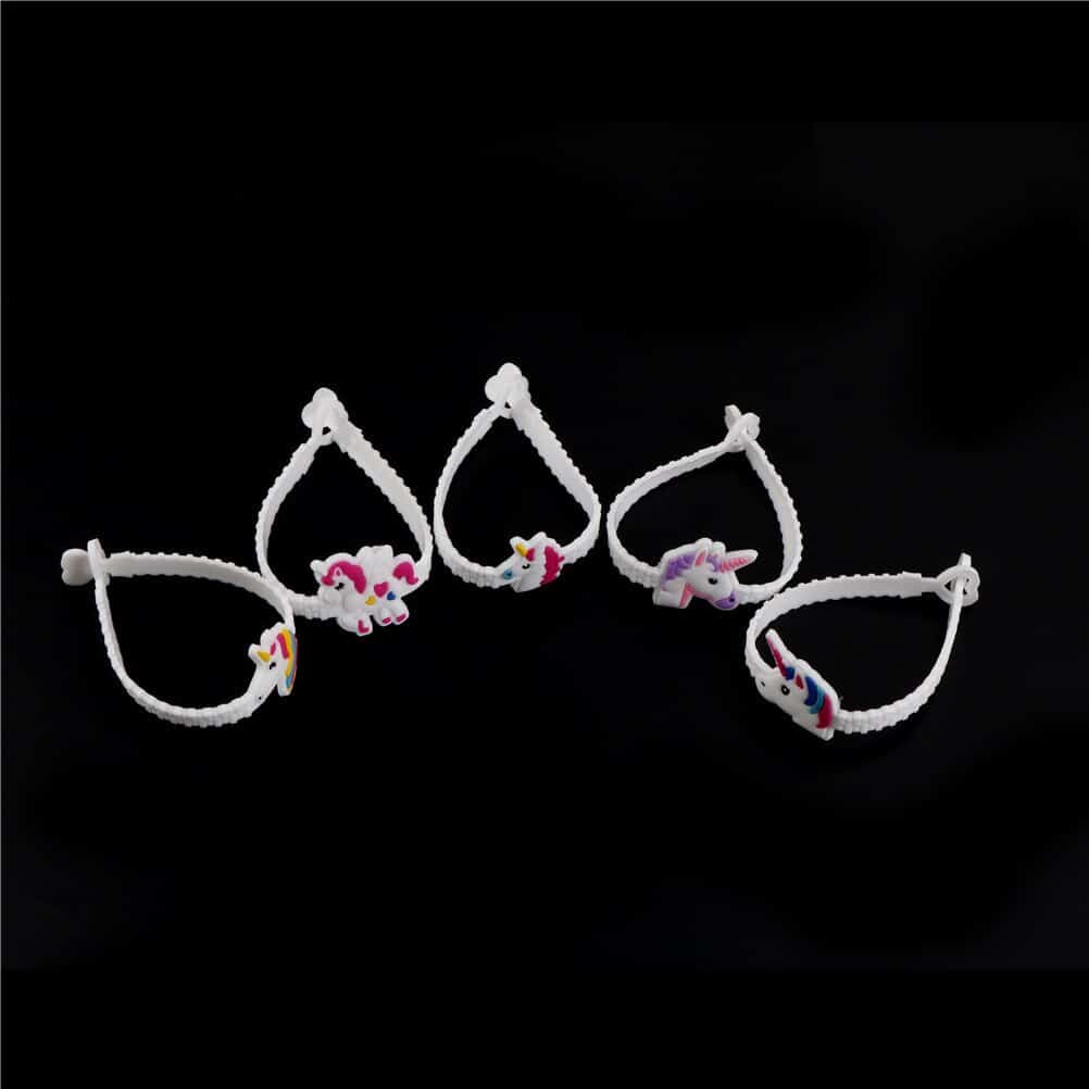 10-delars enhörningsarmband är ett färgglatt plastarmband med 10 enhörningsformade pärlor. Pärlorna är av hårdplast och armbanden av mjukplast. De är perfekta för små flickor som älskar enhörningar! Armbanden är ca 19 cm långa och kan justeras.