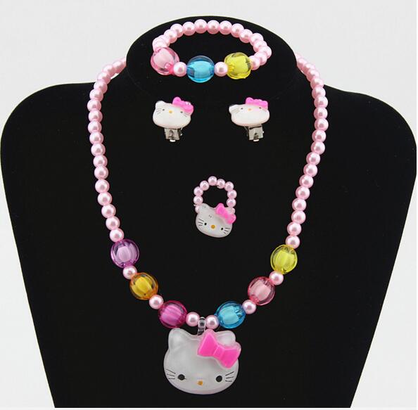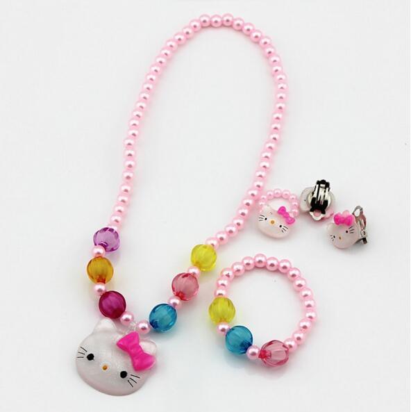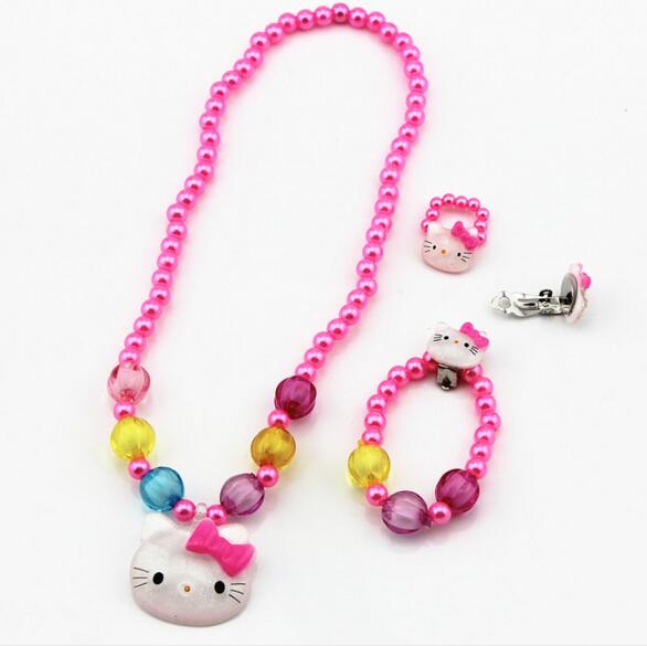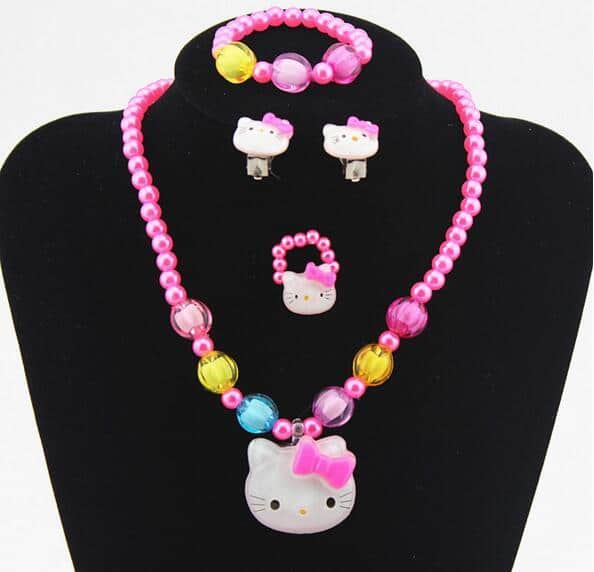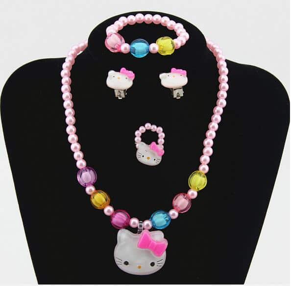 Är din dotter ett Hello Kitty-fan? Då kommer hon garanterat att falla för detta pärlsmyckeset med Hello Kitty-hänge. Det är ett set i fyra delar som består av ett halsband, ett par örhängen, ett armband och en ring. Detta färgglada smycke kommer att ge din dotter en söt, feminin touch.