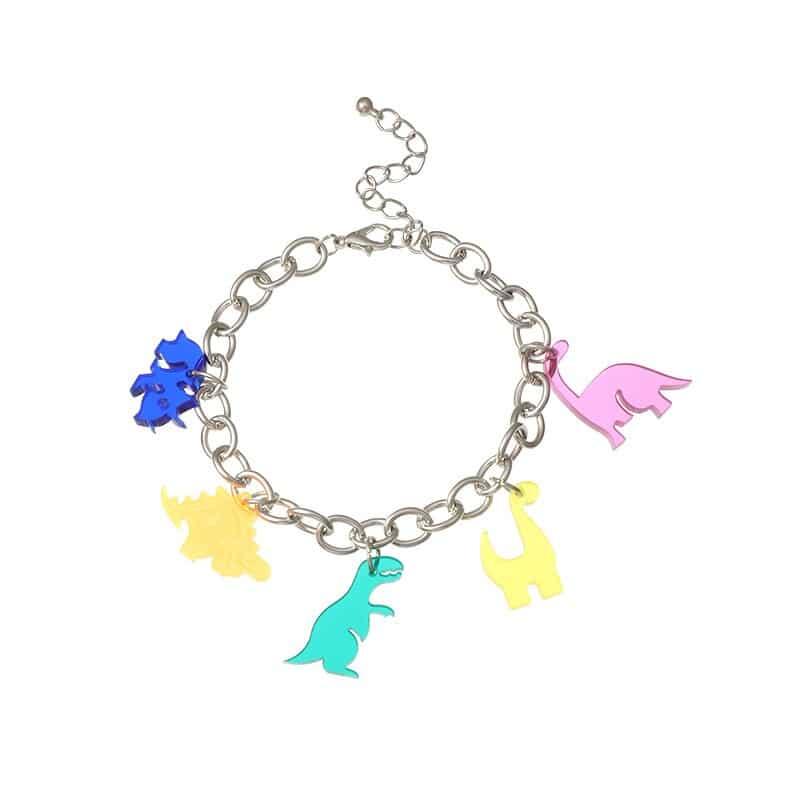Älskar ditt barn att ha ett armband runt handleden? Unna dem då detta söta barnarmband med mångfärgat dinosauriehänge. Med sin originella färg och form kommer detta smycke inte att gå obemärkt förbi på handleden. Oavsett vilken outfit ditt barn bär så kommer detta armband att passa till den.