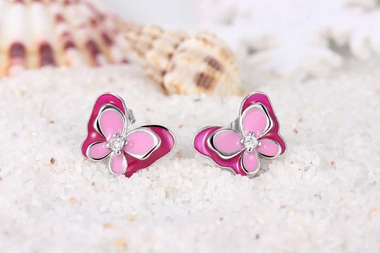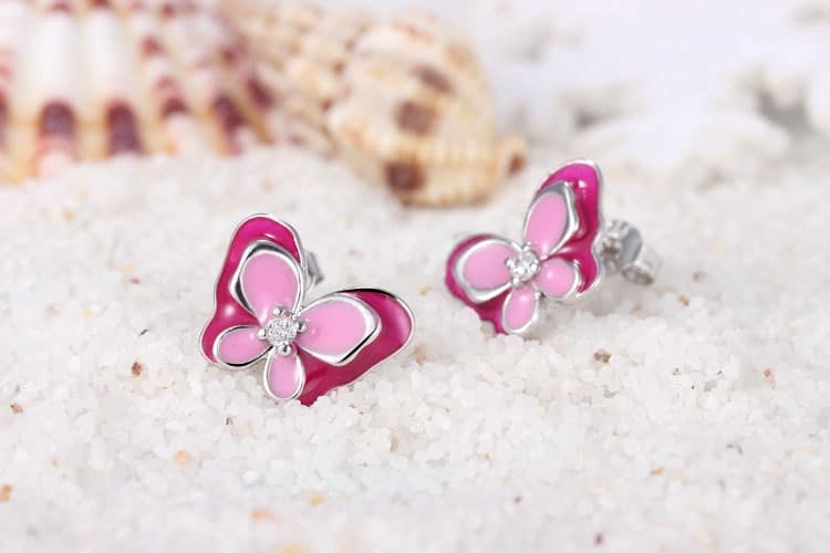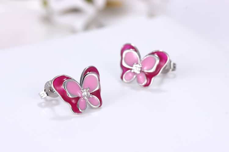 Rosa fjärilsörhängen för liten flicka