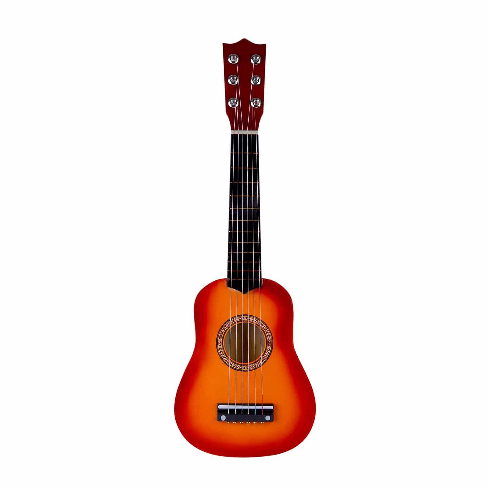 Du kan introducera ditt barn till musik med denna fina sexsträngade trägitarr. Denna barngitarr är lätt att plocka upp och hjälper din pojke eller flicka att lära sig den grundläggande rytmen, att spela stränginstrument och att börja komponera. Med sina sex strängar är gitarren superrealistisk.