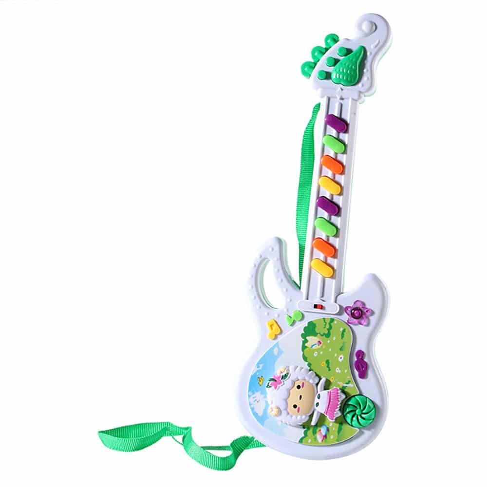 Letar du efter en musikleksak som kan underhålla ditt barn när du är upptagen? Då är denna elgitarr perfekt! Dess färgglada design och tecknade motiv kommer att fånga ditt barns uppmärksamhet. Den trevliga musiken som produceras av denna barngitarr kommer också att bidra till att hålla dem underhållna.