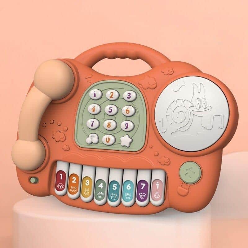 Här är en leksak som garanterat kommer att underhålla ditt barn! Med sitt färgglada utseende är detta vackra piano i form av en fast telefon verkligen fängslande. Men framför allt kommer det att hjälpa ditt barn att ha roligt. Din pojke eller flicka kan använda det som en telefon. Men han eller hon kan också spela musik på det.