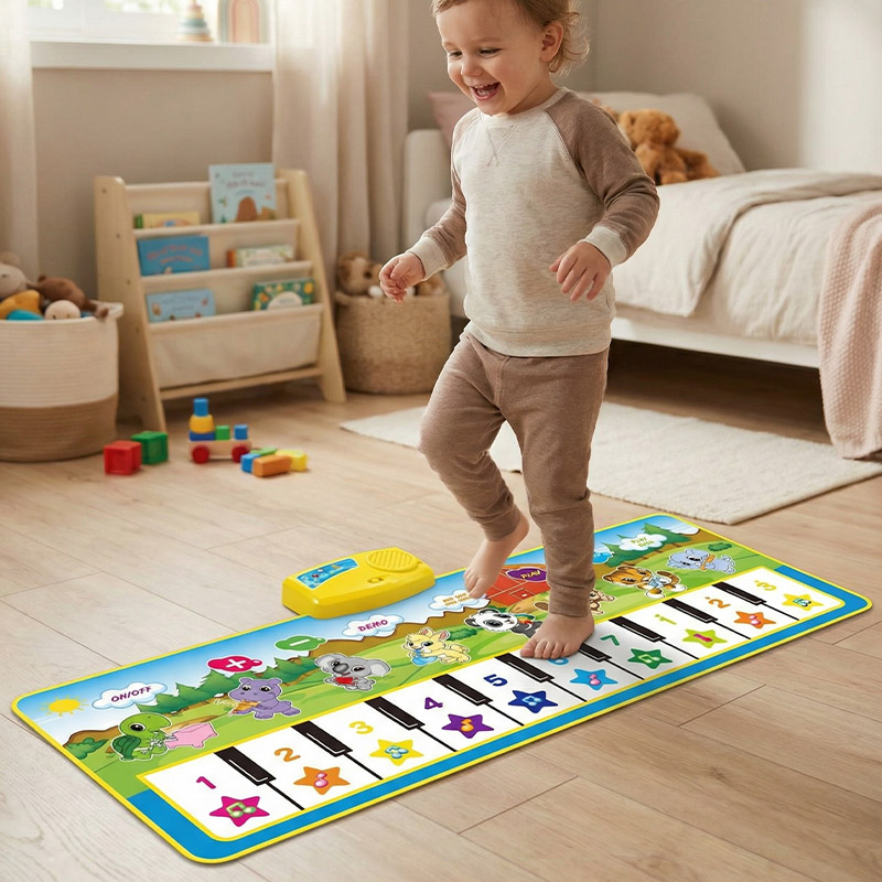 Den här mattan är perfekt för blivande musiker. Den har 37 tangenter som ger upphov till olika ljud och melodier. Så barnen kan lära sig noter och ha roligt på samma gång. Mattan har också ett inspelnings- och uppspelningsläge, så att barnen kan skapa sina egna kompositioner.