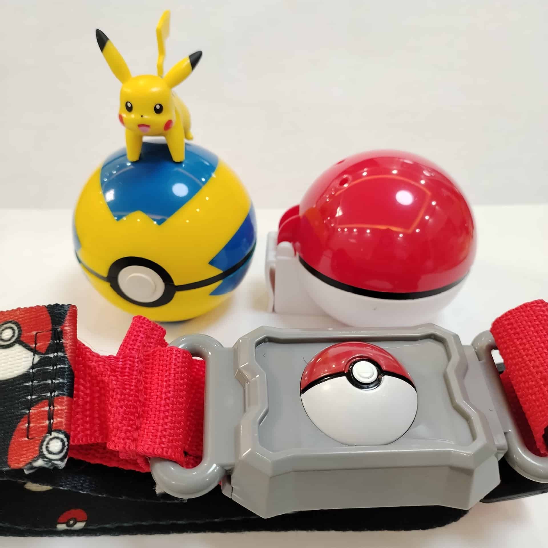 Här är Pokémon-bältet med en Pokeboll och flera figurer, perfekt för fans av serien!