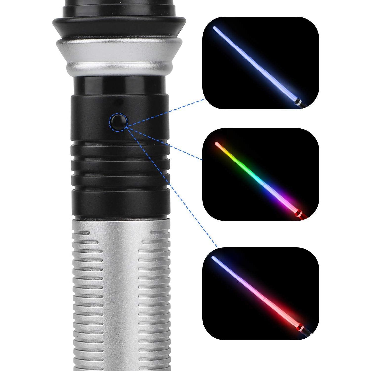 Detta berömda svärd har inte bara ett inbyggt ljud som i filmen, utan ändrar också färg när det kolliderar med ett annat svärd, vilket gör det perfekt och till en dröm för alla barn.