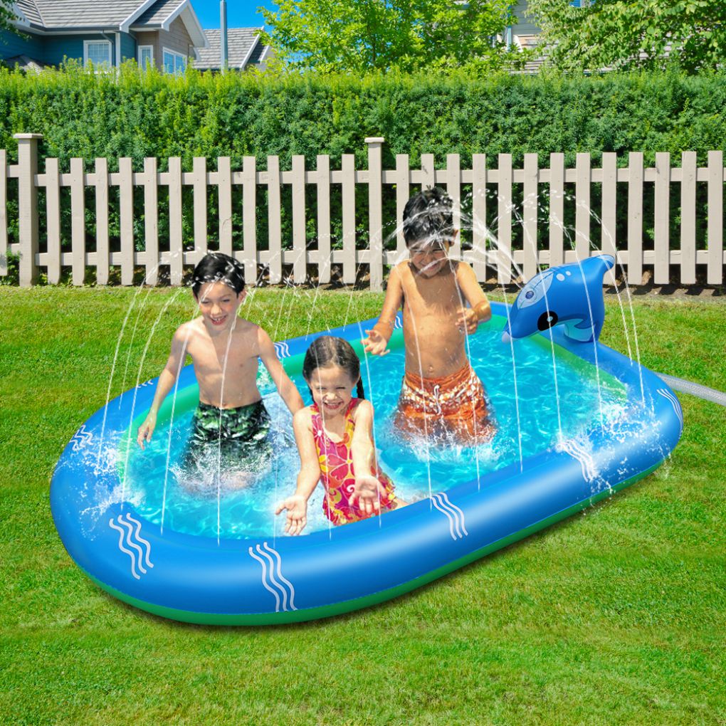 Sommaren är här och värmen likaså? Ge då ditt barn chansen att ha kul och svalka sig på samma gång med vår fantastiska uppblåsbara båt med vattenspruta! Den kan inte bara användas som en riktig swimmingpool, utan du kan också ansluta en vattenförsörjning och se vattenstrålar skjuta ut ur båten för ännu mer coolhet!